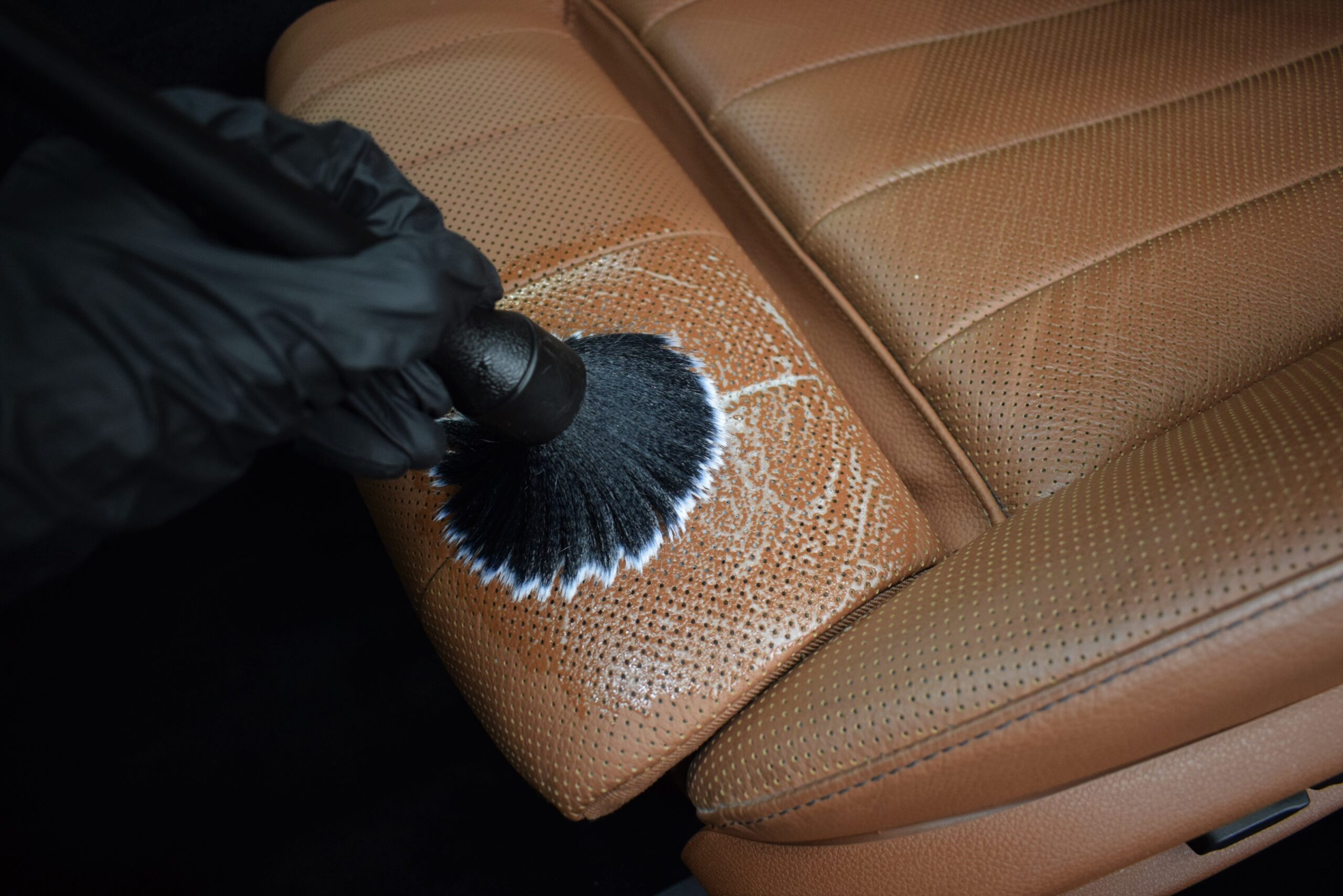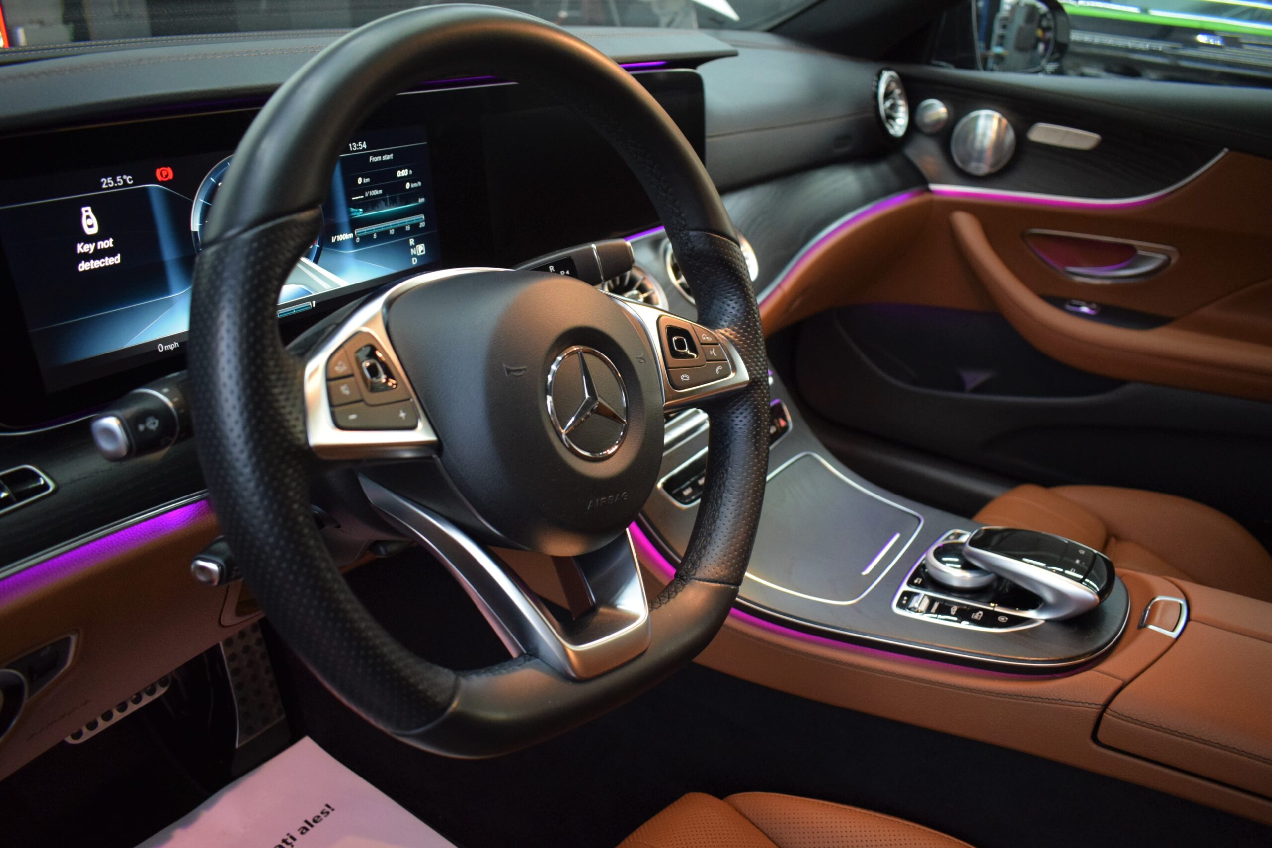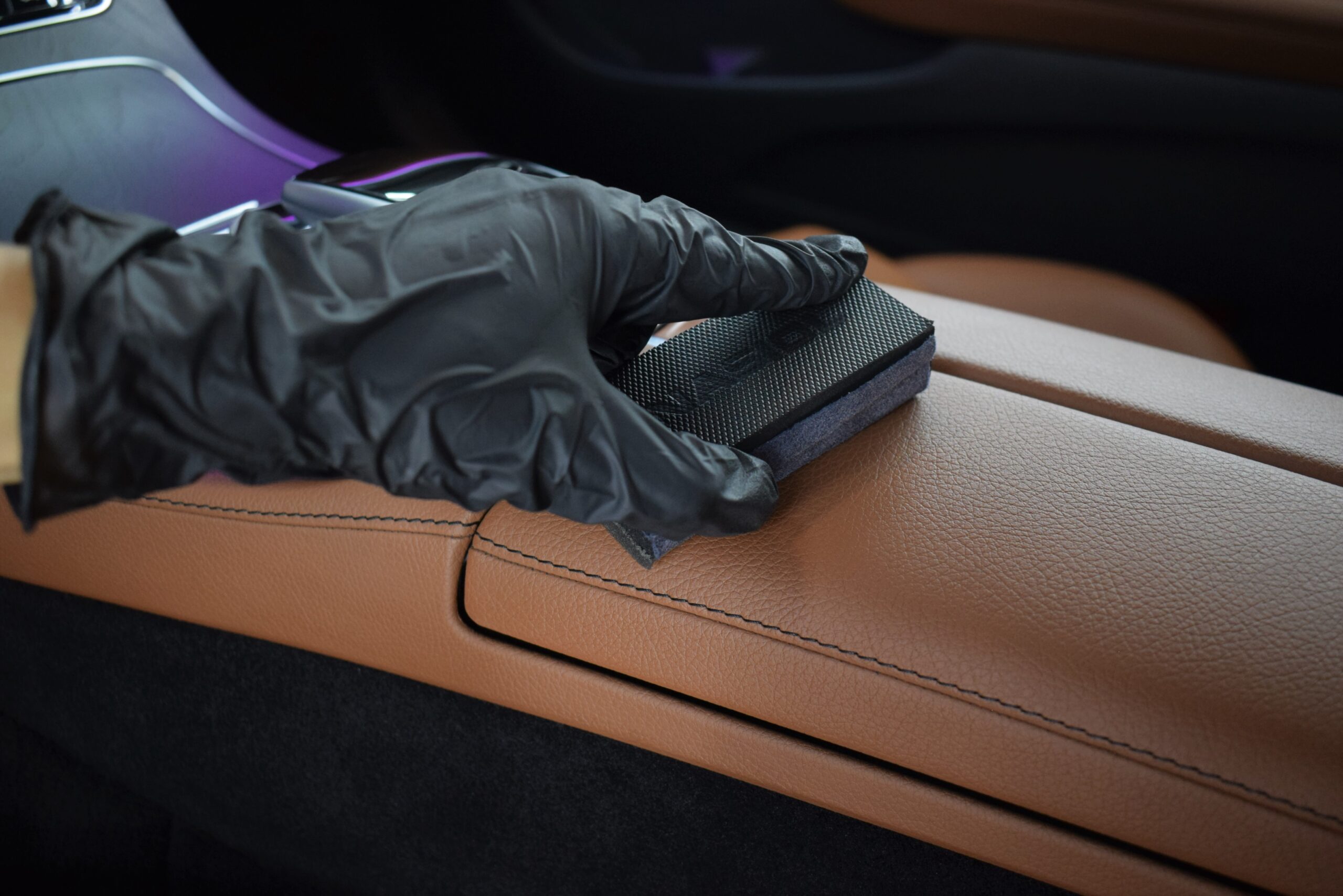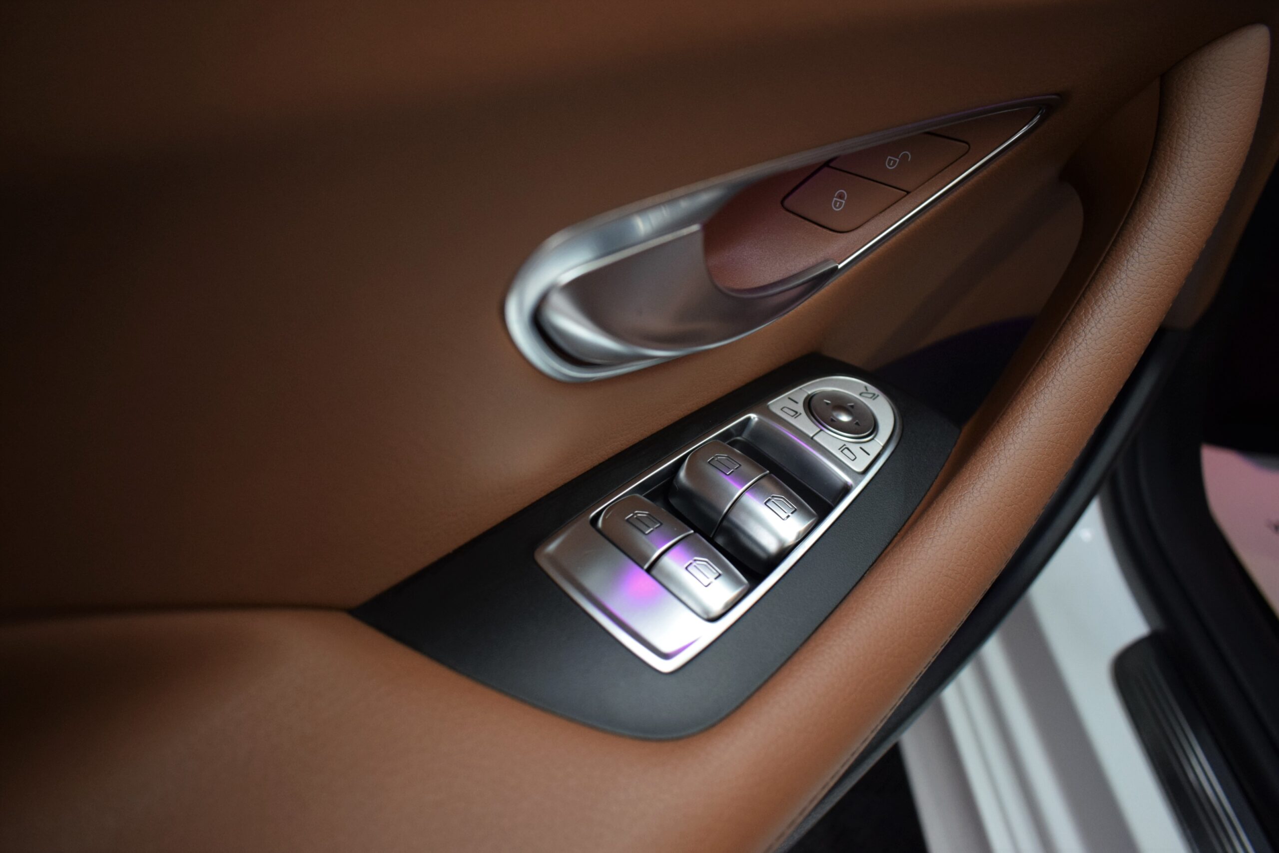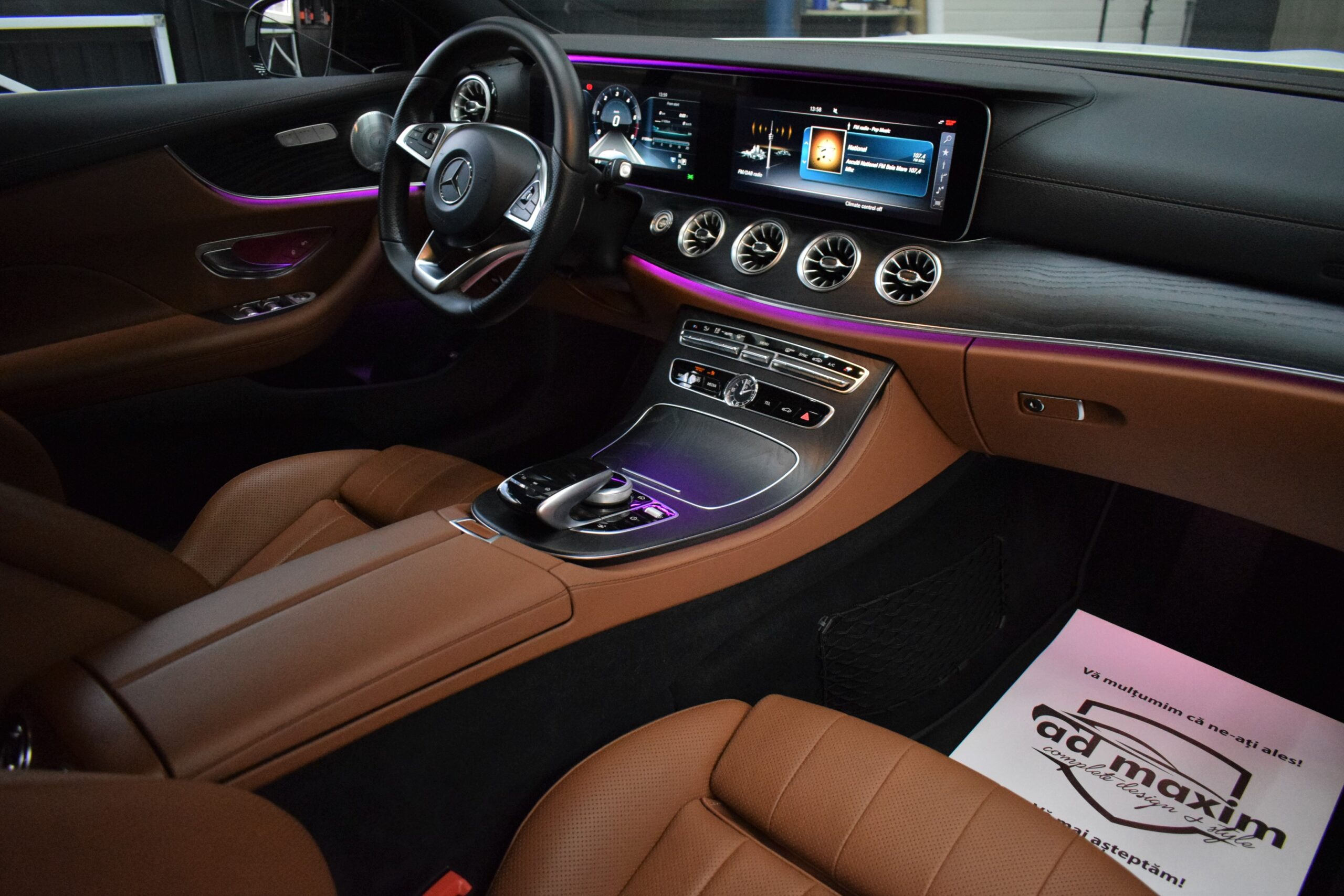 Configuratia alb exterior cu interior din piele maro si lumini ambientale creeaza un ambient rafinat, pe care l-am pus in valoare printr-o curatare in profunzime si reconditionarea suprafetelor.